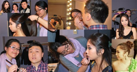 As I was happily setting up, my first victim entered, the handsome Jack Liu! When it comes to male grooming, it’s a 50/50 chance that the guy will shift uncomfortably in his seat, wondering if he’s starting to look like a drag queen. Jack, the pro he is, was obviously used to the primping of the stars. He allowed me to take out my tweezers and start plucking away, apply a bit of this and that, and voila! As I was working, we chit chatted and I found out that Jack is a piano teacher. How cool is that? But I grew up in a church where everyone and anyone took piano lessons, as did I, so there was familiarity there but I knew that it didn’t really mean that you were a great pianist even if you can teach it (follow-up on this below…)